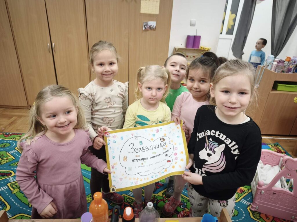 Нашој драгој, сад другарици, Јеци, уручичи смо захвалницу, на сарадњи, коју смо тог јутра направили. Добили смо грануле за куце и маце, па смо у повратку нахранили животиње које су на улици.